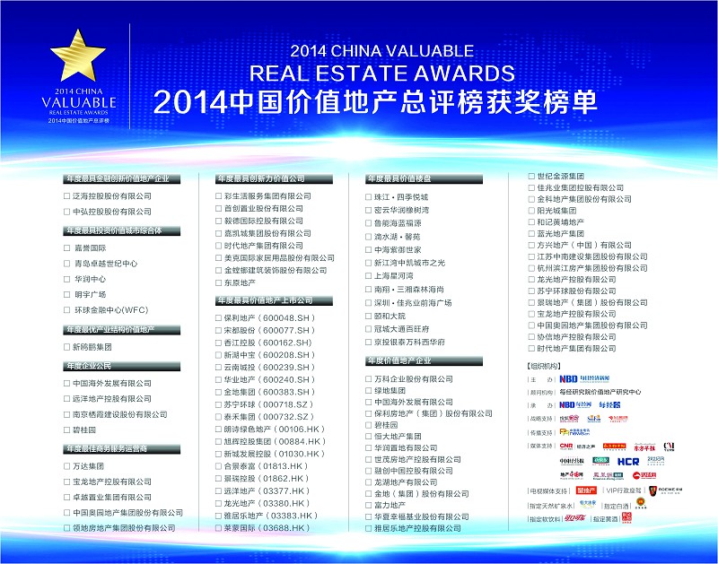 | 16:25-17:25 | 60′ | 2014中國價值地產(chǎn)總評榜榮譽盛典 | |
