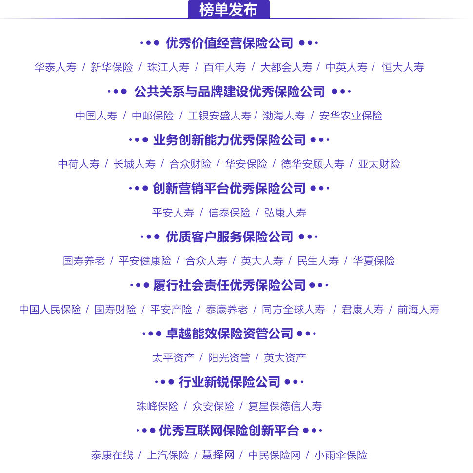 本次評選將秉持客觀真實、公正透明、范圍廣泛的原則,以“第5個保險公眾宣傳日”活動為契機,再次將視角聚焦于新生態(tài)環(huán)境下中國保險業(yè)最具經(jīng)營智慧的風云企業(yè),力求準確把握保險風云脈絡(luò)。榜單以壽險、產(chǎn)險、資管為經(jīng)度,以經(jīng)營理念、品牌建設(shè)、業(yè)務(wù)創(chuàng)新、客戶服務(wù)、償付能力、社會責任、資管能效為緯度來設(shè)置獎項。