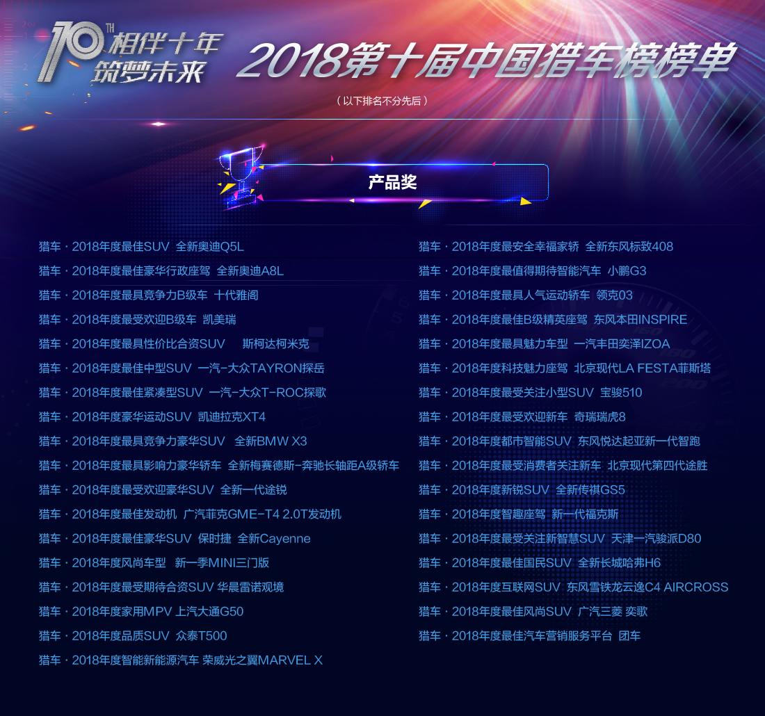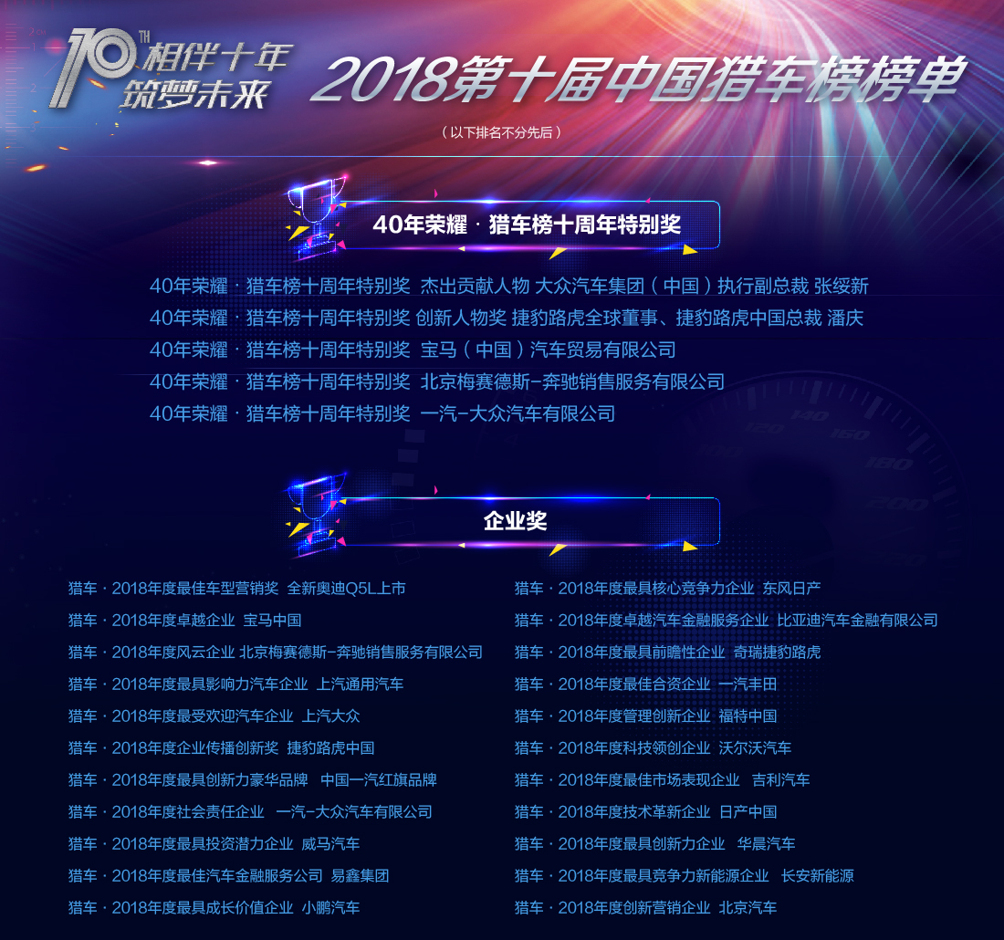 屆時,《每日經(jīng)濟新聞》將舉辦“第十屆中國獵車榜”評選。專業(yè)鑄就品質,《每日經(jīng)濟新聞》始終秉持專業(yè)的精神主辦“中國獵車榜”評選,經(jīng)過9年的發(fā)展,成為了行業(yè)最具權威和影響力的重要獎項評選之一。